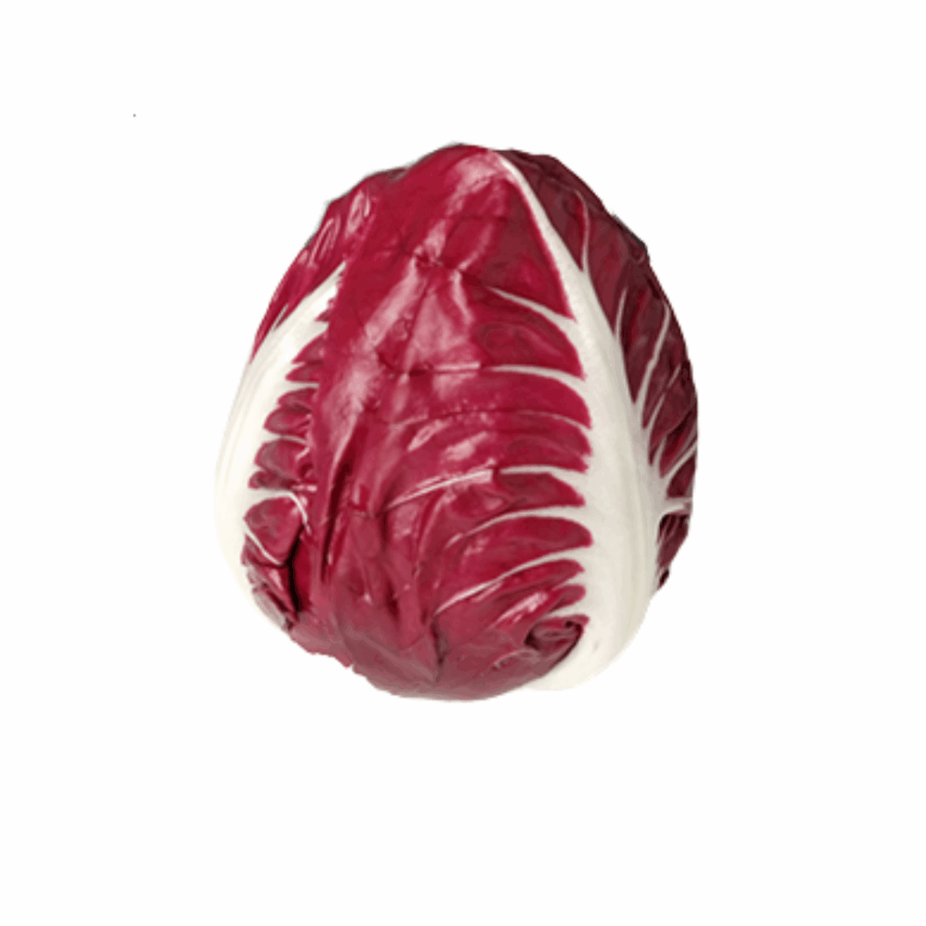 Kleiner, kompakter Kopf mit rundlichen Blättern, etwas milder als Chioggia. Für Wintersalate oder angebraten zu Fleisch und Fisch.