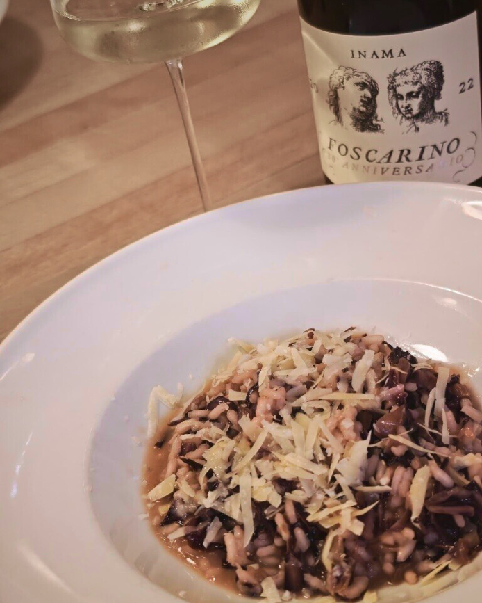 Weintipp: Zum Radicchio-Risotto passt ein Weißwein mit Würze, zurückhaltender Frucht und reifer Säure. Besonders authentisch wäre ein Soave wie etwa der Foscarino von Inama. Er wächst auf vulkanischem Boden und präsentiert sich würzig, kraftvoll und tiefgründig.